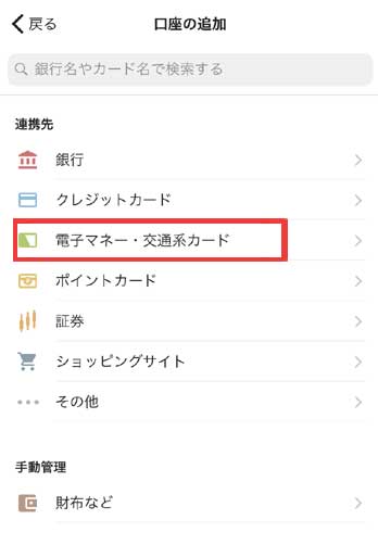 Zaim起動>残高>口座を追加>電子マネー・交通系カード