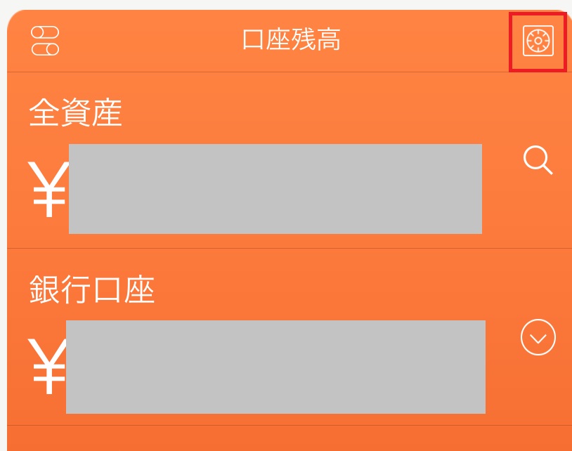 トップ画面から歯車のところをタップ