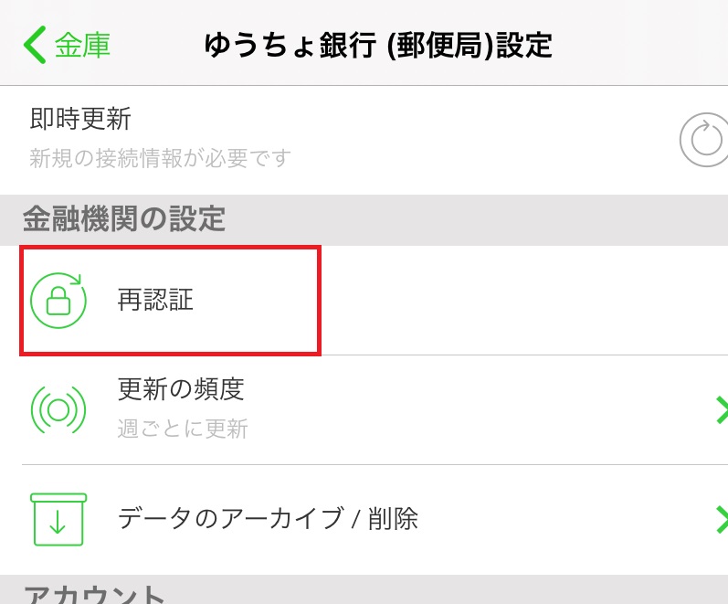 私は、Moneytree(マネーツリー)とゆうちょ銀行の再連携は以下の手順で行いました。