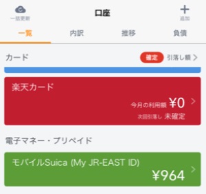 ご自分が連携したい電子マネーやプリペイドカードを選んで登録し、連携ができると、口座の一覧に連携済みの電子マネーが表示されます。