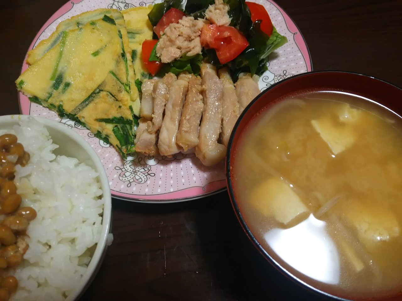 ・味噌汁(油揚げ、豆腐、もやし)