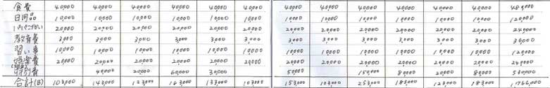 すでに家計簿をつけている人なら6月は携帯電話代がいつも安いから少な目に見積ろう…などの知恵が働くことがありますが、初めて年間予算表を作成する人なら、細かく支出を予測することは難しいものですから、おおよその平均額で充分です。