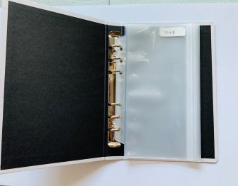 封筒で袋分け家計簿をやると封筒がボロボロになってしまうのが気になるという時は、100均のパスポートケースやバインダーのリフィルを使うと便利です(写真は筆者がセリアで購入したもの)。